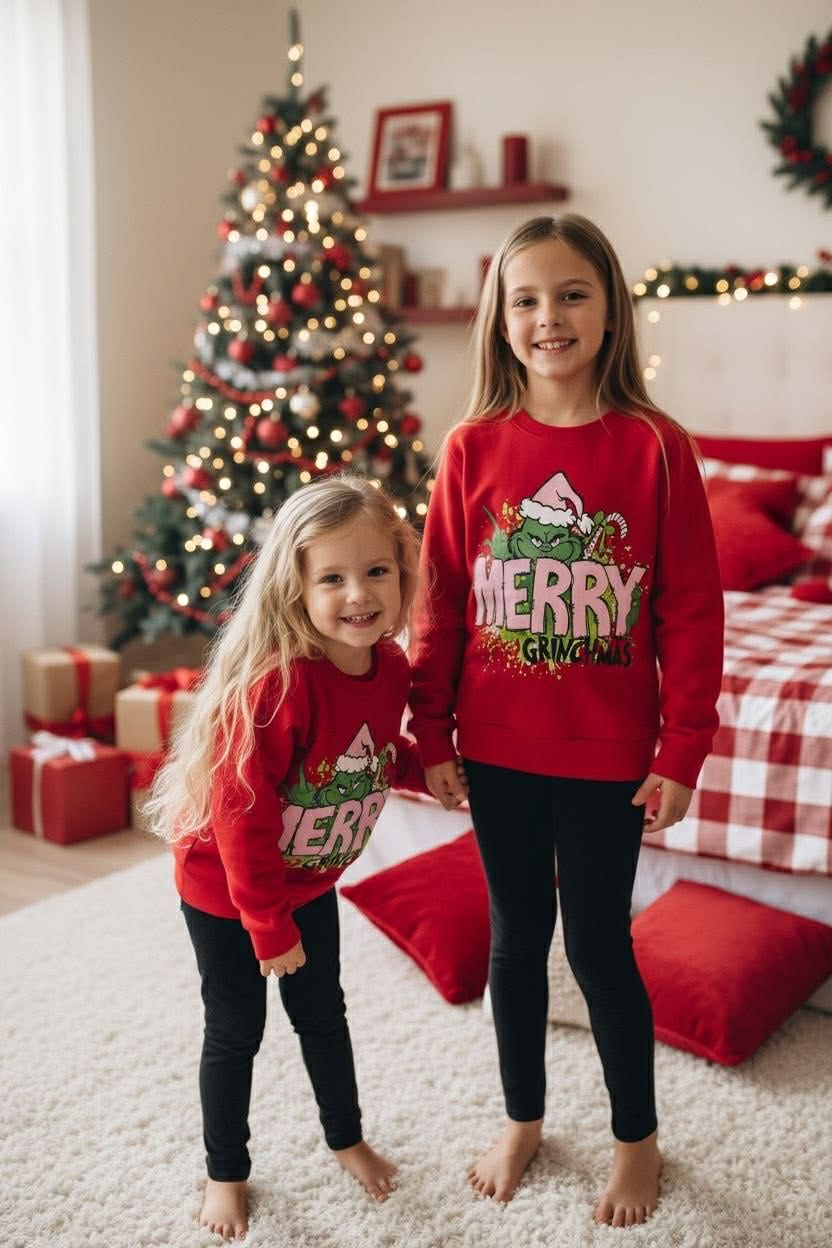 Czerwona bluza Mama/Tata & Córka & Syn – Kolekcja Grinch 🎄