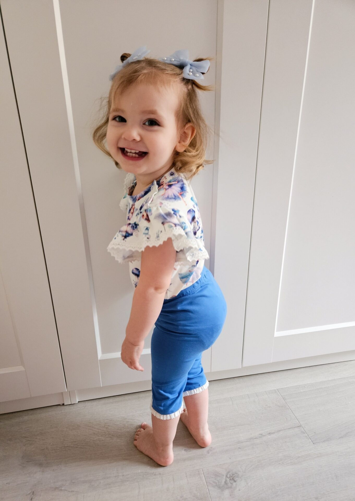 Urocze i wygodne legginsy dziecięce w długości 3/4 w intensywnym odcieniu chabru. Wykonane z miękkiej, elastycznej dzianiny bawełnianej, idealnie dopasowują się do sylwetki dziecka, zapewniając komfort noszenia przez cały dzień – zarówno w przedszkolu, jak i podczas zabawy na świeżym powietrzu.
