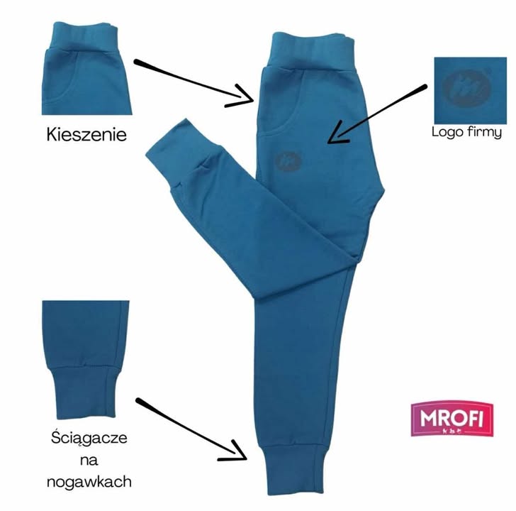 Spodnie dresowe dla szczupłych chłopców Mrofi niebieskie