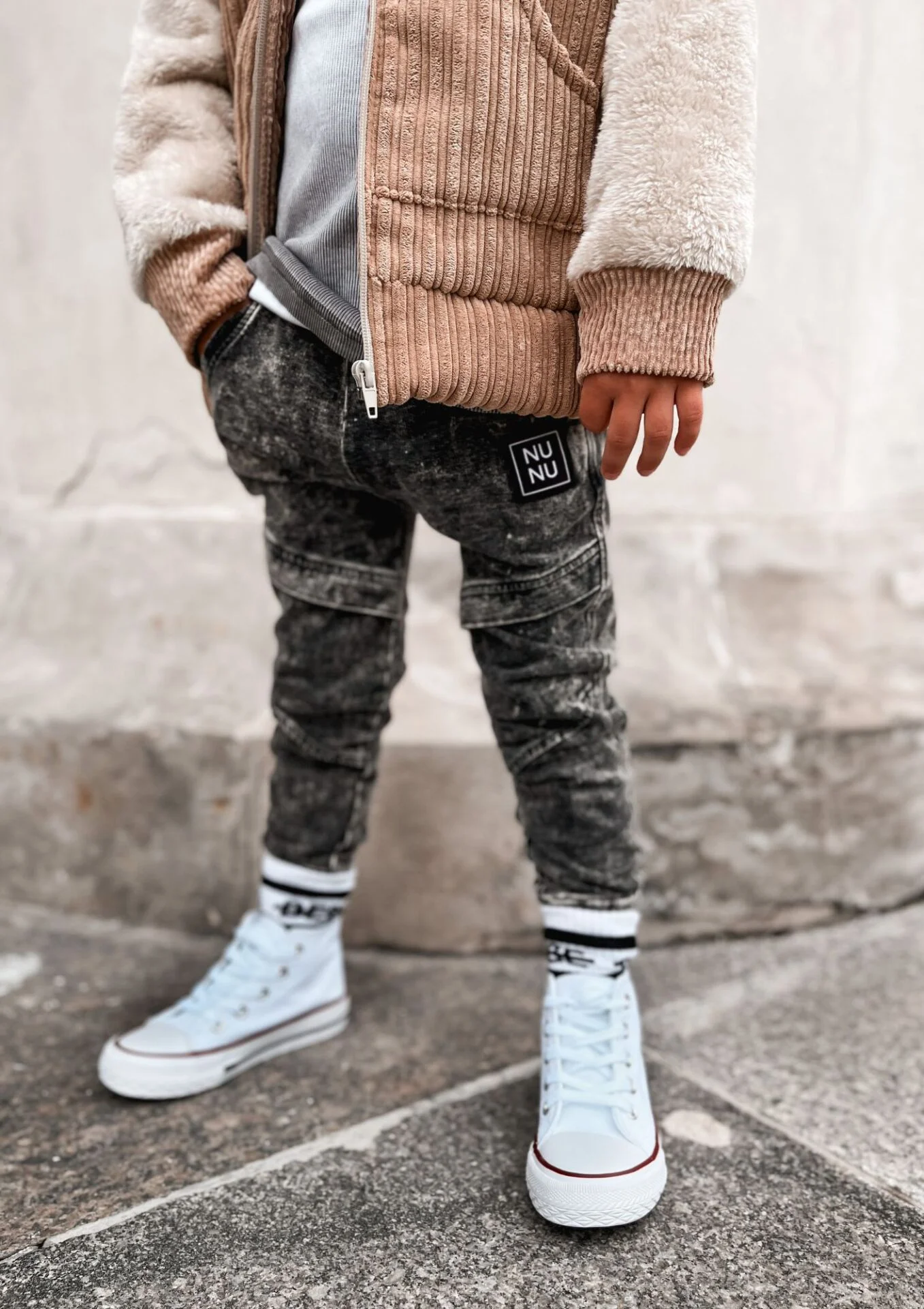 - dzięki spraniu uzyskaliśmy efekt przetarć oraz wybarwienia koloru
